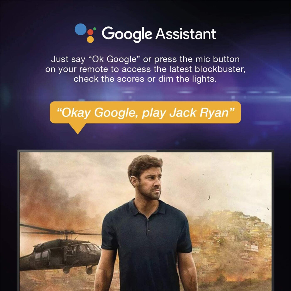 - GOOGLE ASSISTANT: Just say “Ok Google” or press the mic button on the remote to quickly find the latest movies, check the football scores or control home devices.