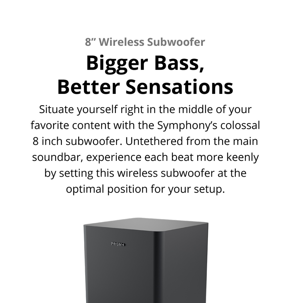 PRISM+Symphony 5.1.2ch带杜比全景声的条形音箱|760W|无线低音炮|无线音乐流|蓝牙5.0