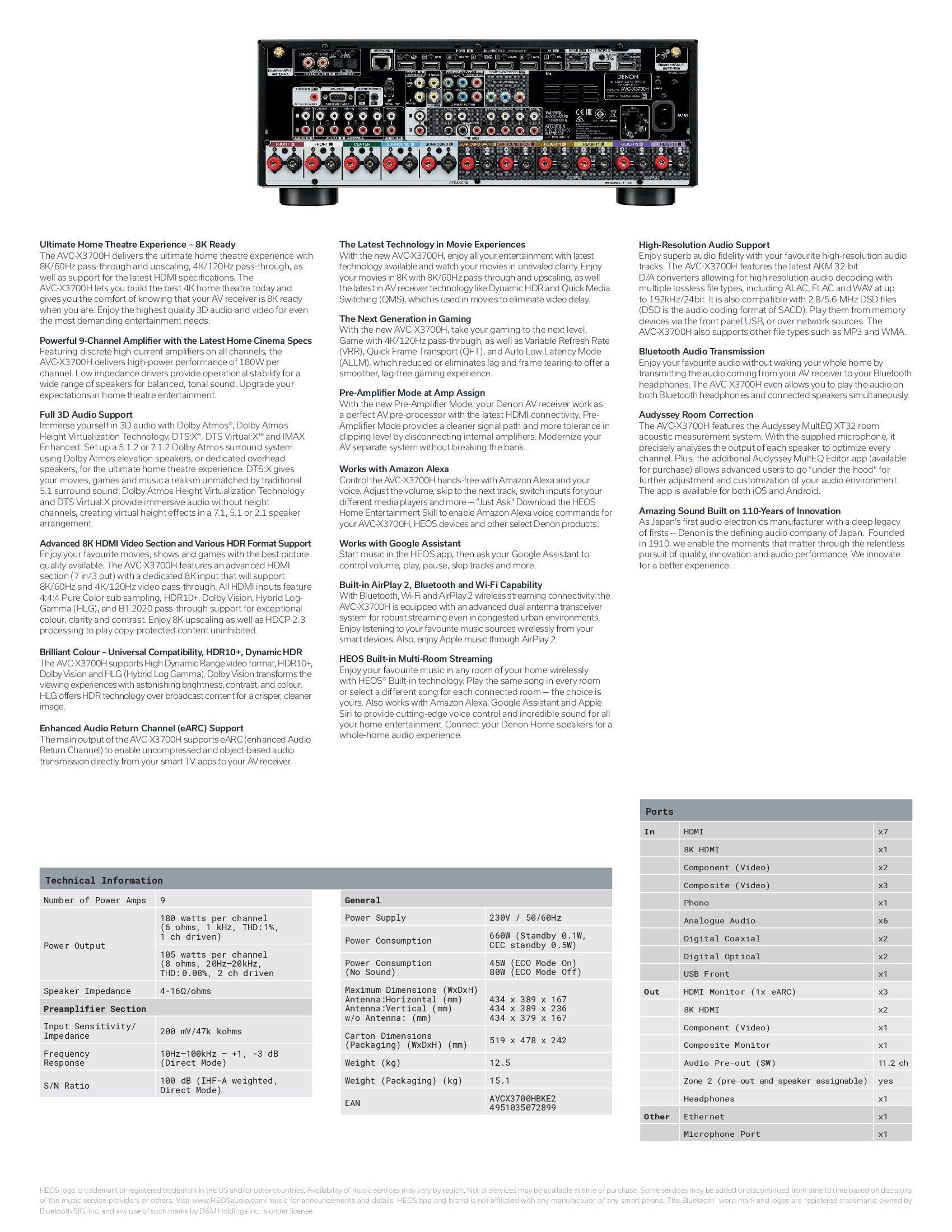 Whichever camp you're in, Denon's AVR-X3700H is poised to deliver.This nine-channel, 8K-capable receiver has everything you need for afun-packed home theater experience.Let's take a closer look.