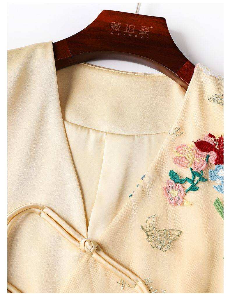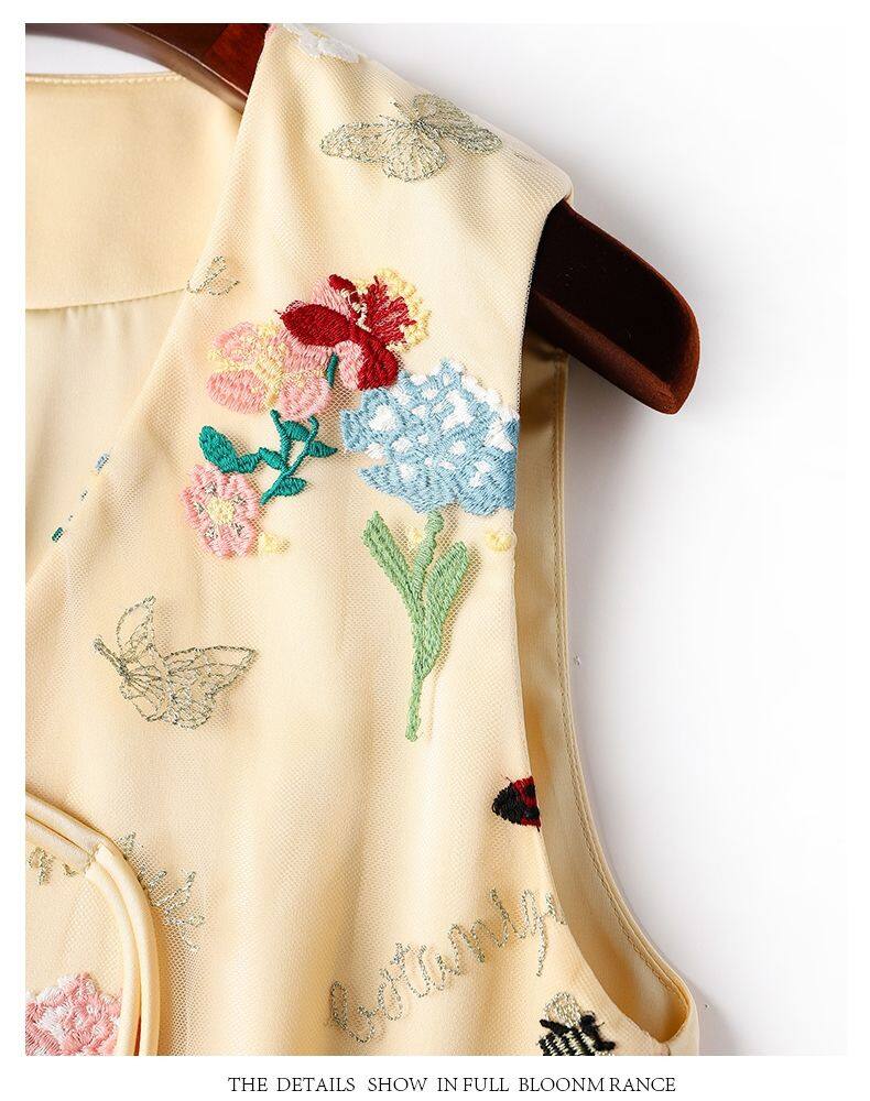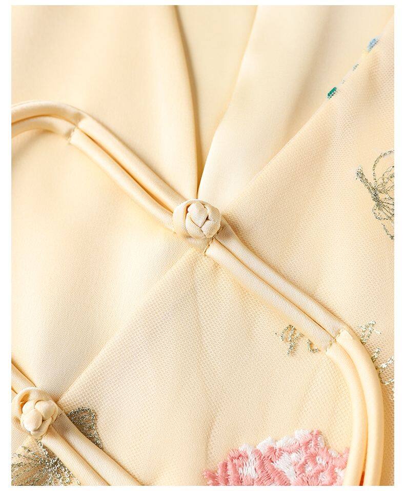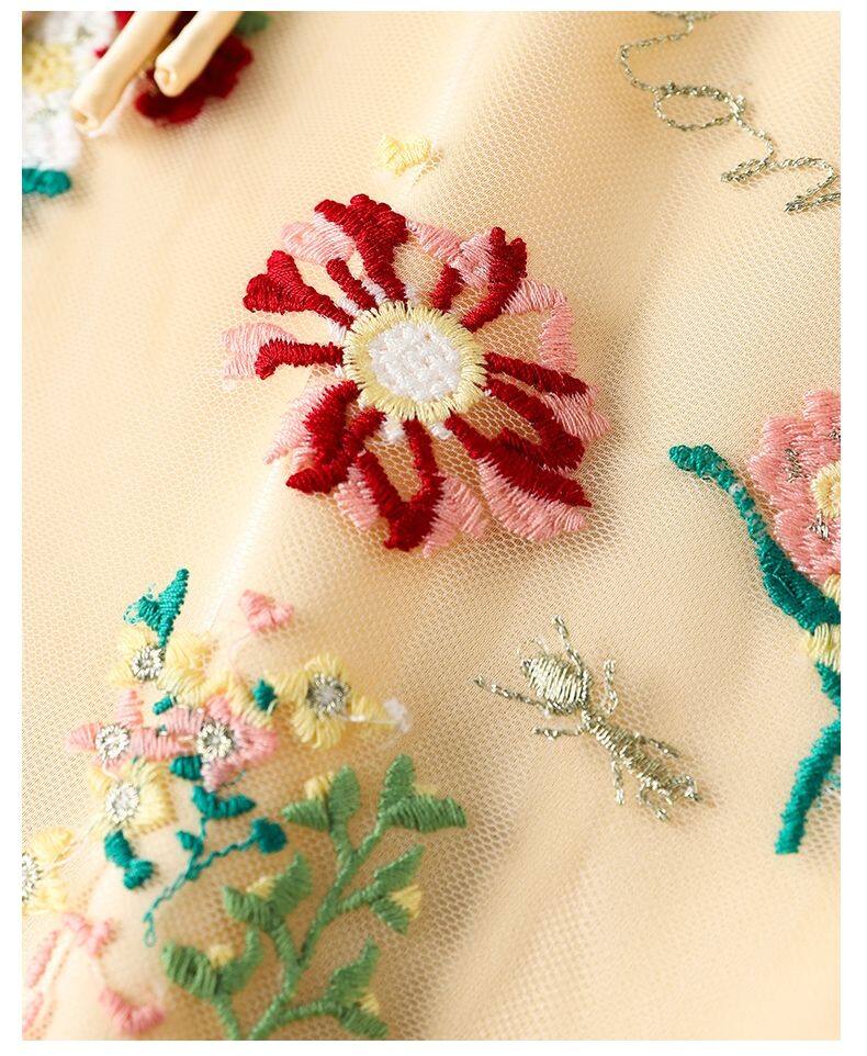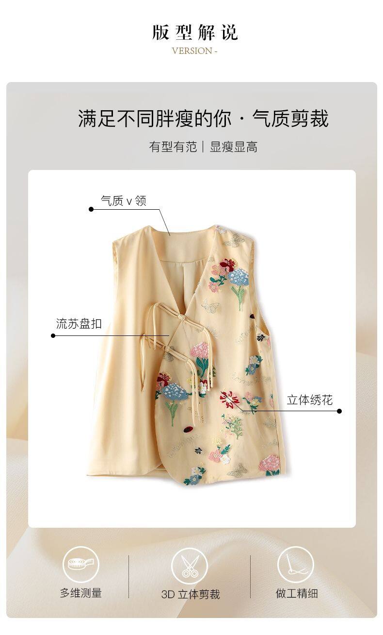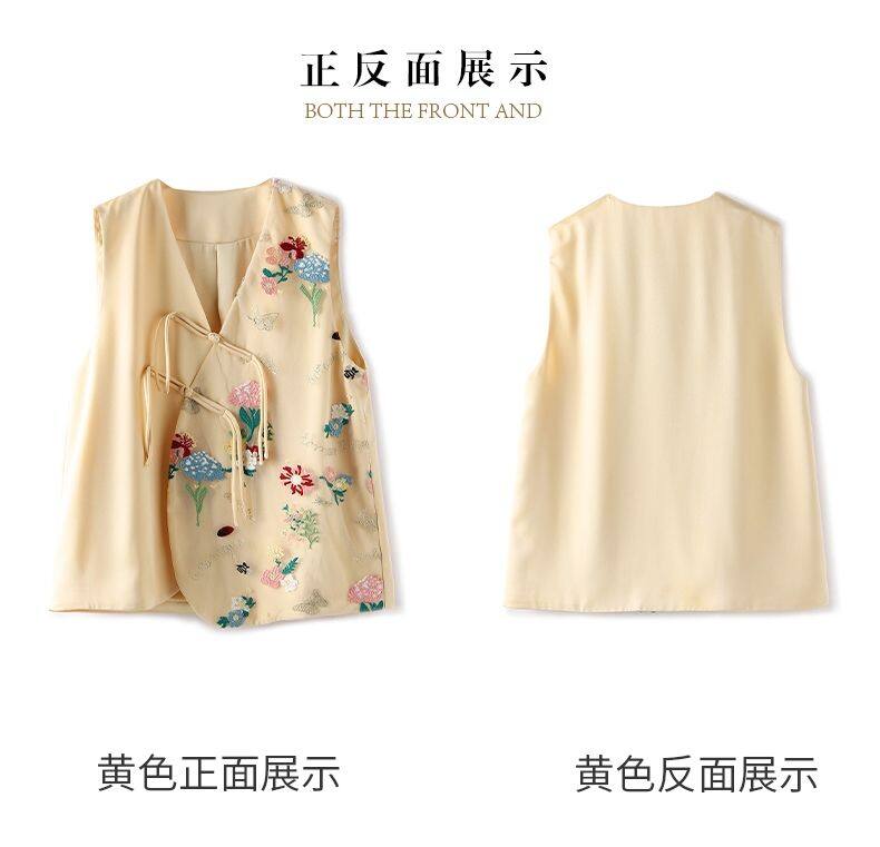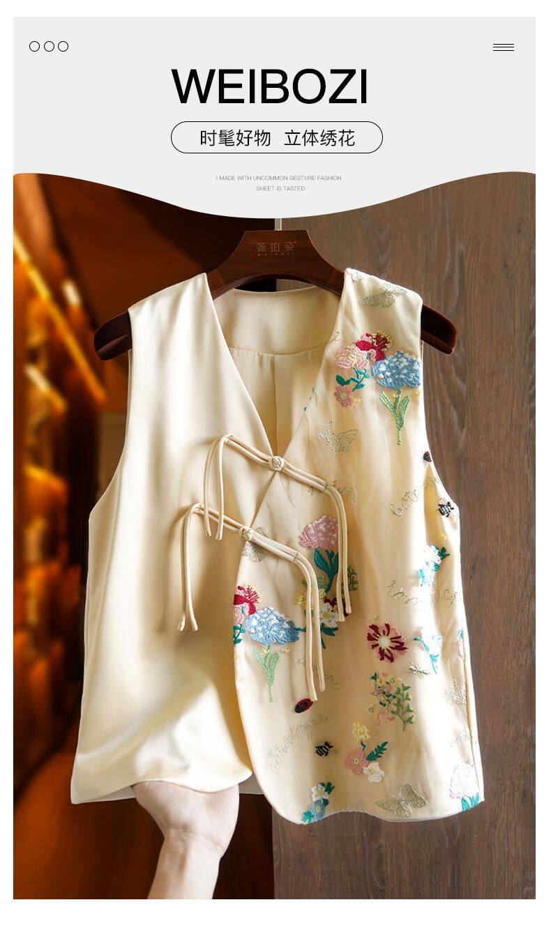 Joso杏粉色高级夏季感中式背心女式夏装原创设计网眼刺绣乡村风板扣上衣