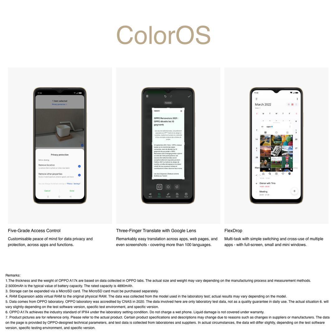 OPPO A17K/IPX4防水/5000mAh长效电池/侧面指纹解锁/4GB扩展RAM