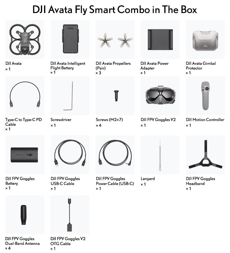 DJI Avata: Does not include a remote controller or . You can use the DJI Motion Controller, DJI FPV Remote Controller 2, or DJI FPV V2 that you already own.