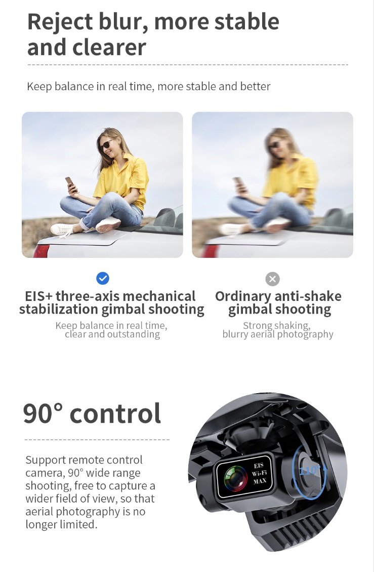 Item No: KF101 MAX Color :Dark Grey Frequency :2.4G (Remote Control) & 5G (Mobile Phone) Drone Battery :11.1V 2500mAh  Control Distance : 3KM For KF101 MAX Wifi Image Transmission Distance : 3KM  Flight Time :  About 25 min  Charging Time : About 6 hours USB Charging :  5V/2A Drone Weight : 613g (Needs drone registration in Singapore) Remote Control Battery : 3.7V 1000mAh Transmitter Charging Time : About 60min Transmitter Operating Time :  About 10 hours Camera : 3 -Axis Electronic Stabilization Gimbal EIS electronic image stabilization Camera Camera Lens :  120° Photo Resolution (APP) :  3840*2160 P Video Resolution (APP) :  1280*720 P Photo Resolution (SD Card) :  2560*1440 P Video Resolution (SD Card) :   2560*1440 P Frame Rate : 30fps Photo Format : JPG Video Format : MP4 or AVI Adjustable Angle :90° Gesture Shooting : 1-3 M GPS Follow Me :  30 M+ SD Card Supports 32G-128G(Not Included) Mobile Device System Version : iOS 8.0 or later / Android 4.4.4 or later
