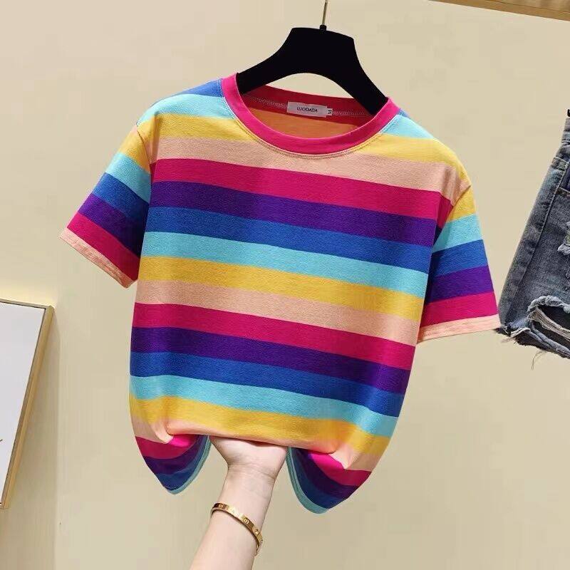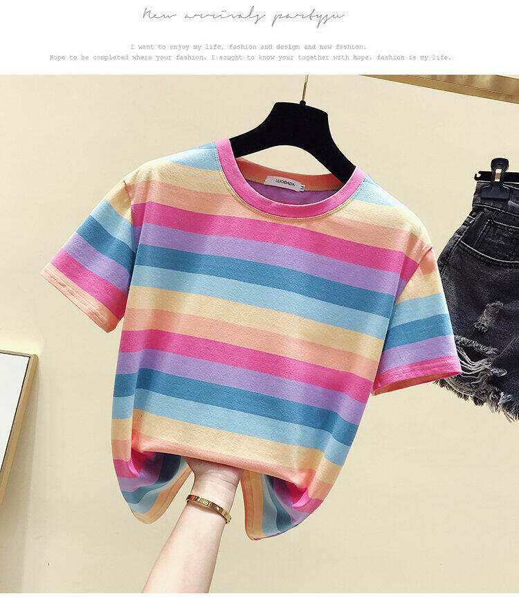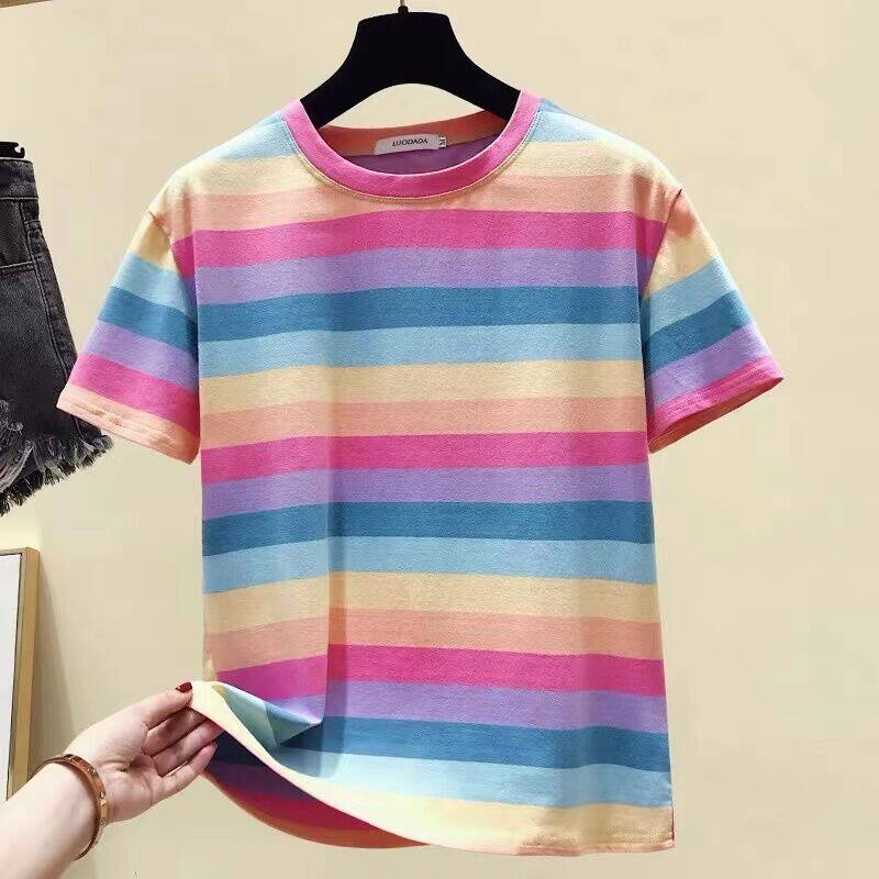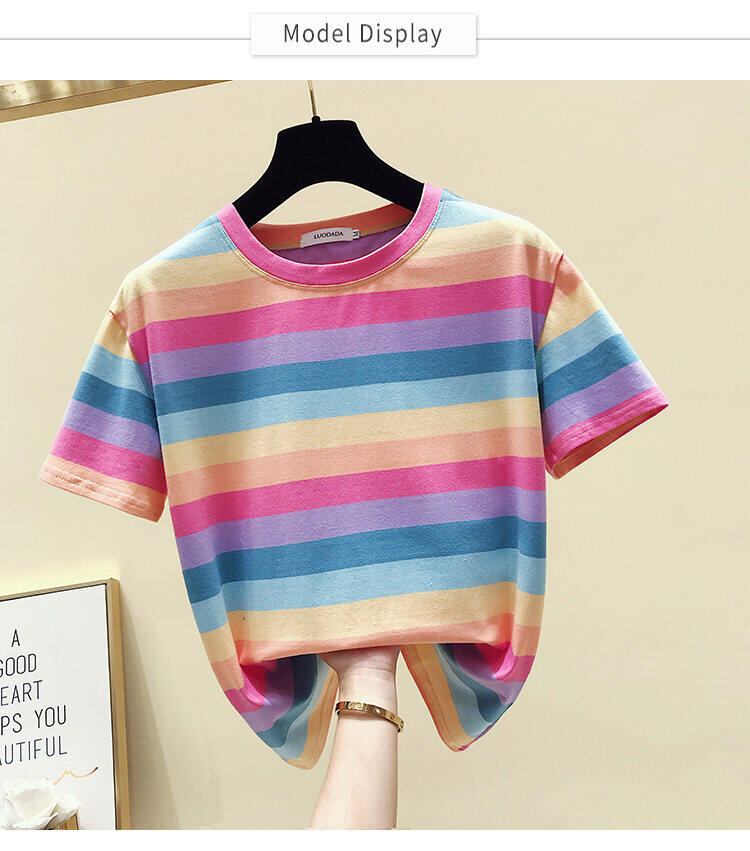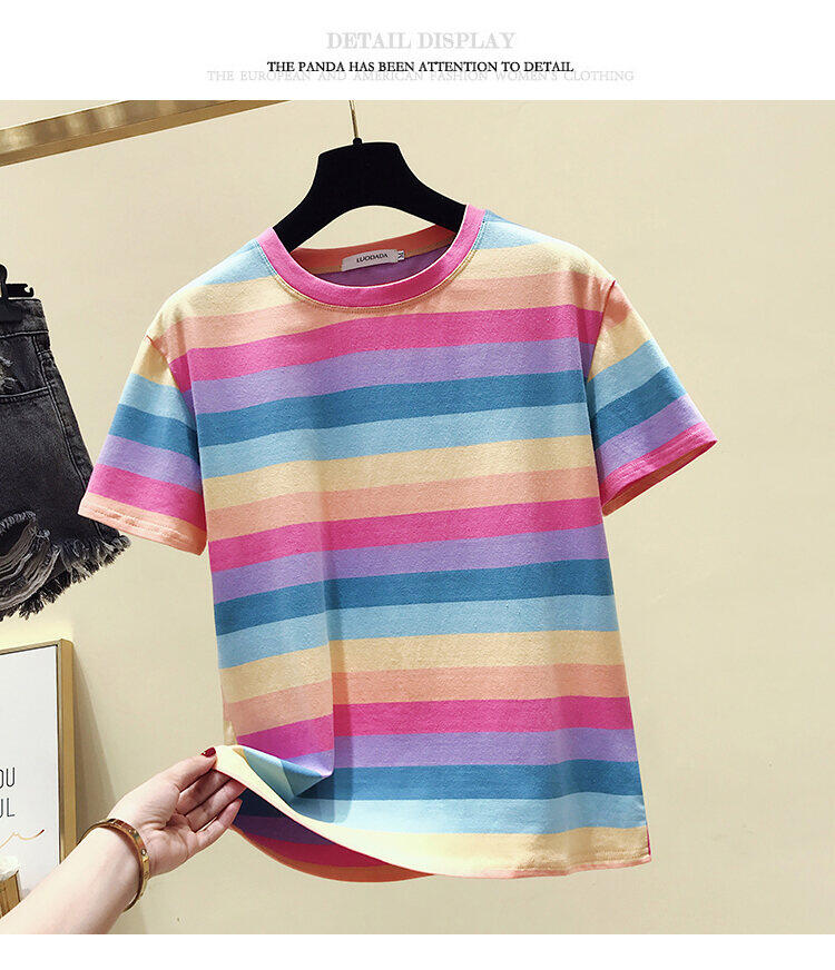 超受欢迎的条纹韩式宽松圆领短袖T恤